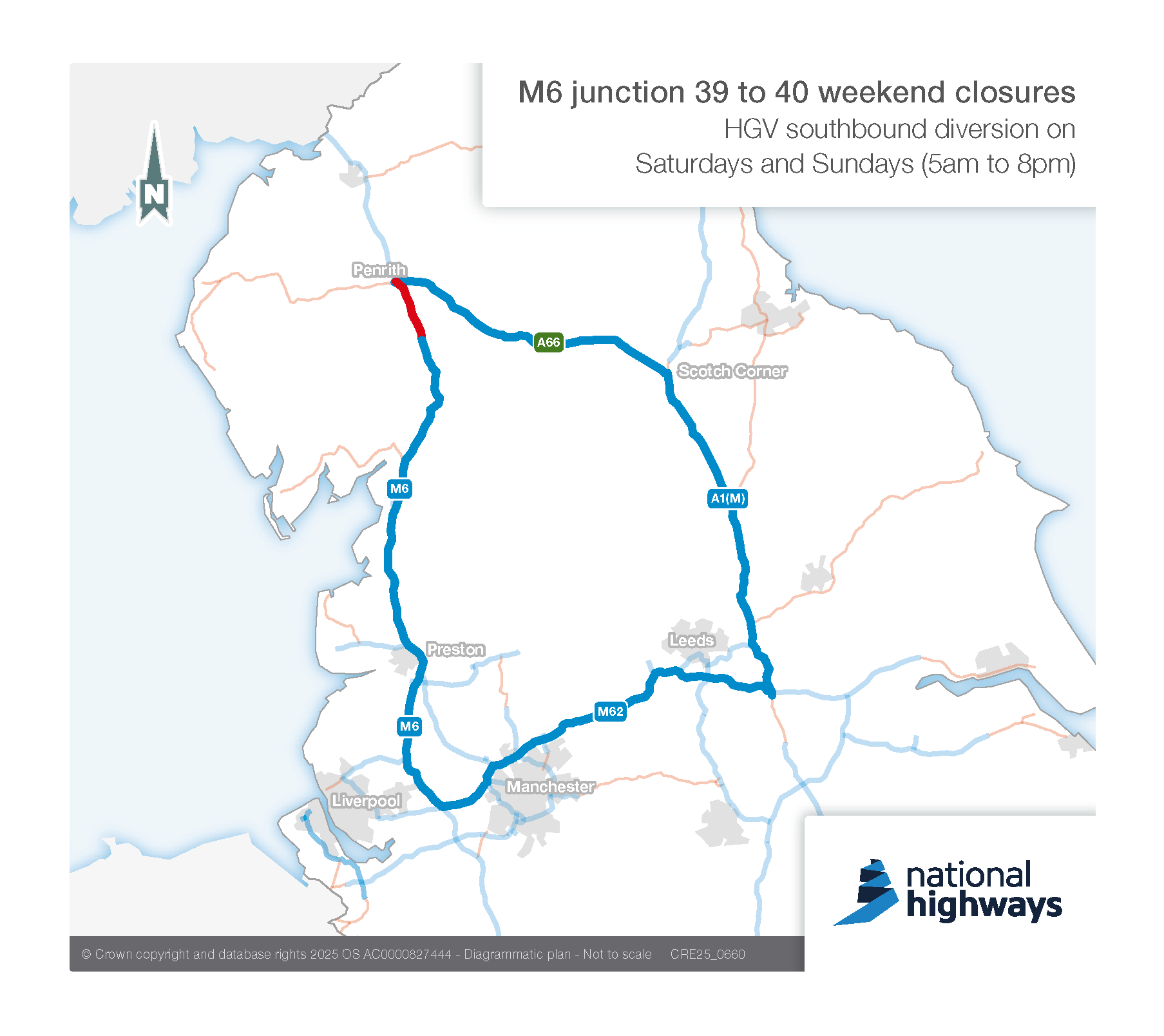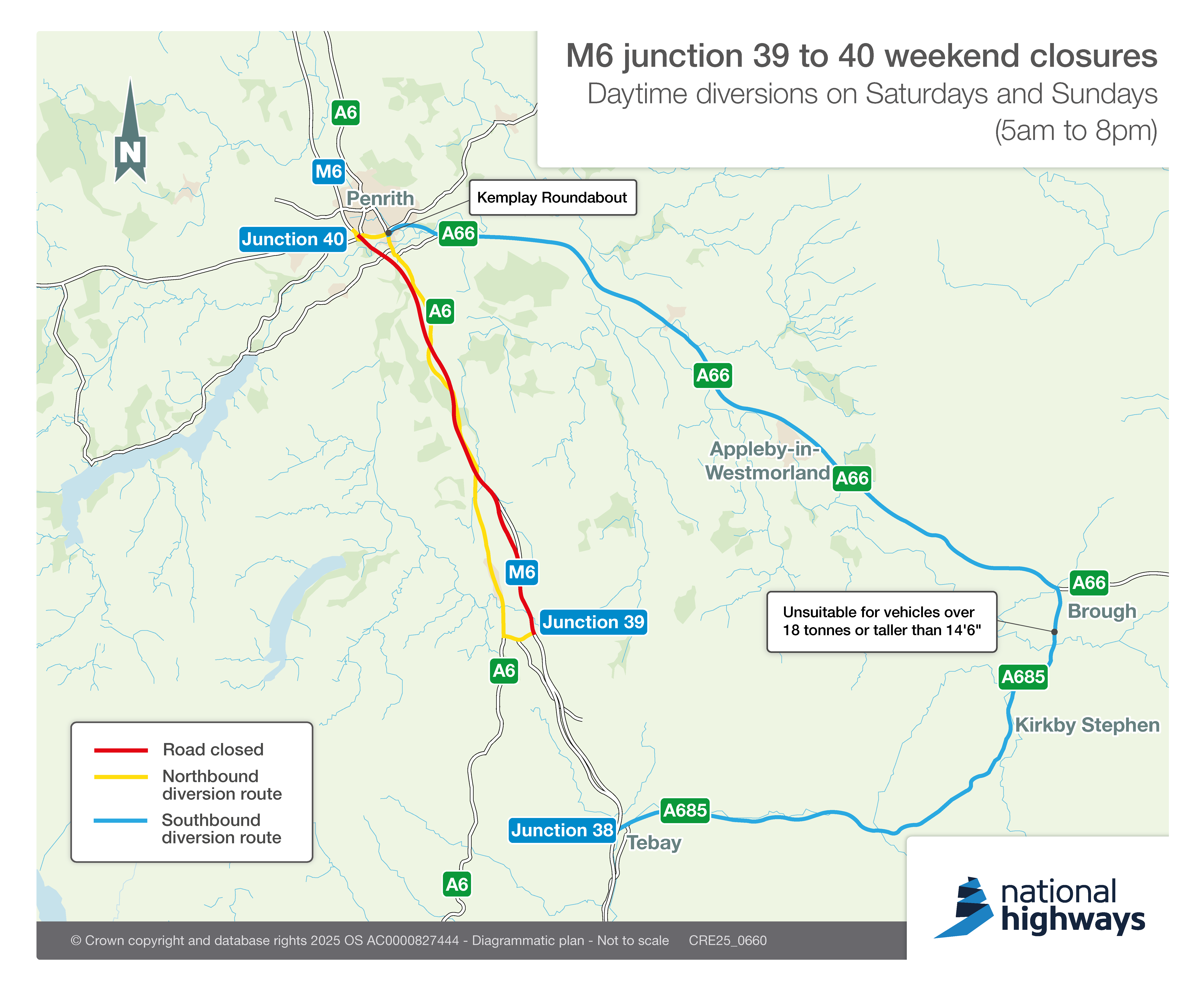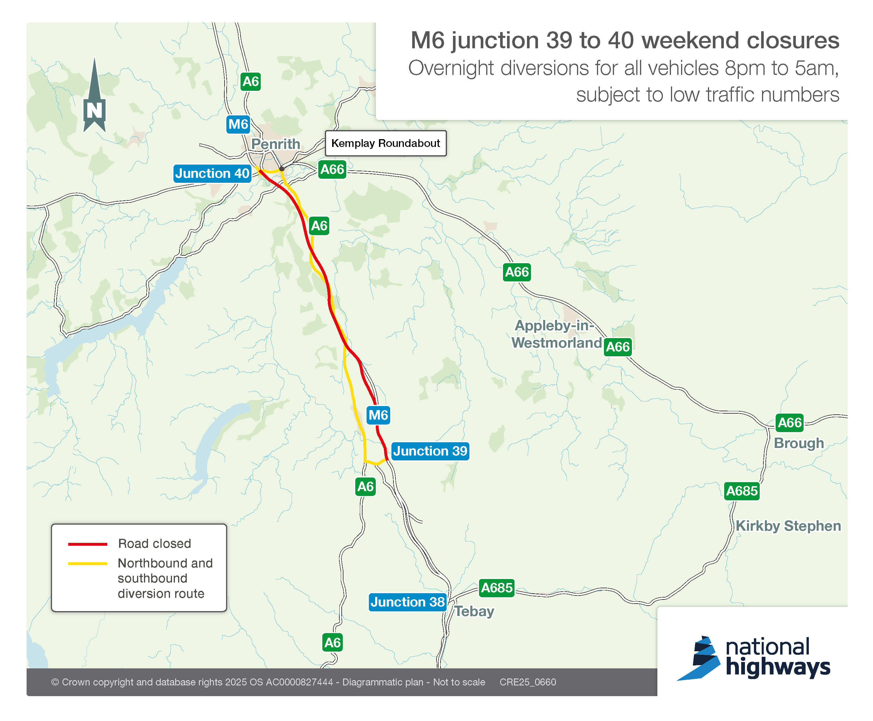 The following traffic management will be in place on a three-mile section of the M6 between junction 39 (Shap) and 40 (Penrith):