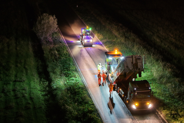 A project to resurface a stretch of road in East Anglia – using recycled materials and electric machinery – is smashing low carbon targets.